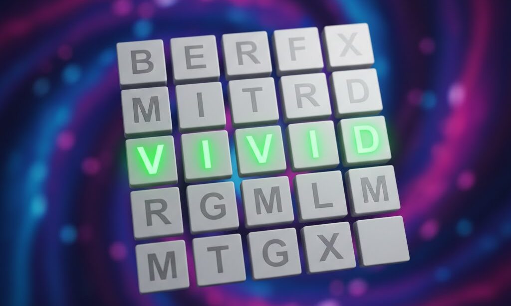 VIVID is deceptively hard because it reuses two letters (V and I) and uses a relatively uncommon starting letter. Many players waste guesses trying to fit in common letters like R, S, T, L, N, only to realize the word is much more constrained than they thought.