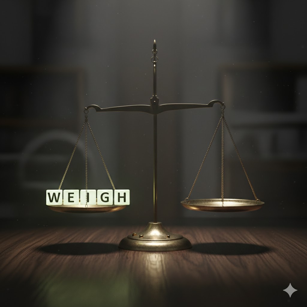 WEIGH is a classic example of English’s “silent letters” causing trouble. Players might guess phonetically similar words or struggle to place the ‘G’ and ‘H’ at the end, as they are silent. The ‘EI’ vowel pair is also less common than ‘EA’ or ‘IE’.